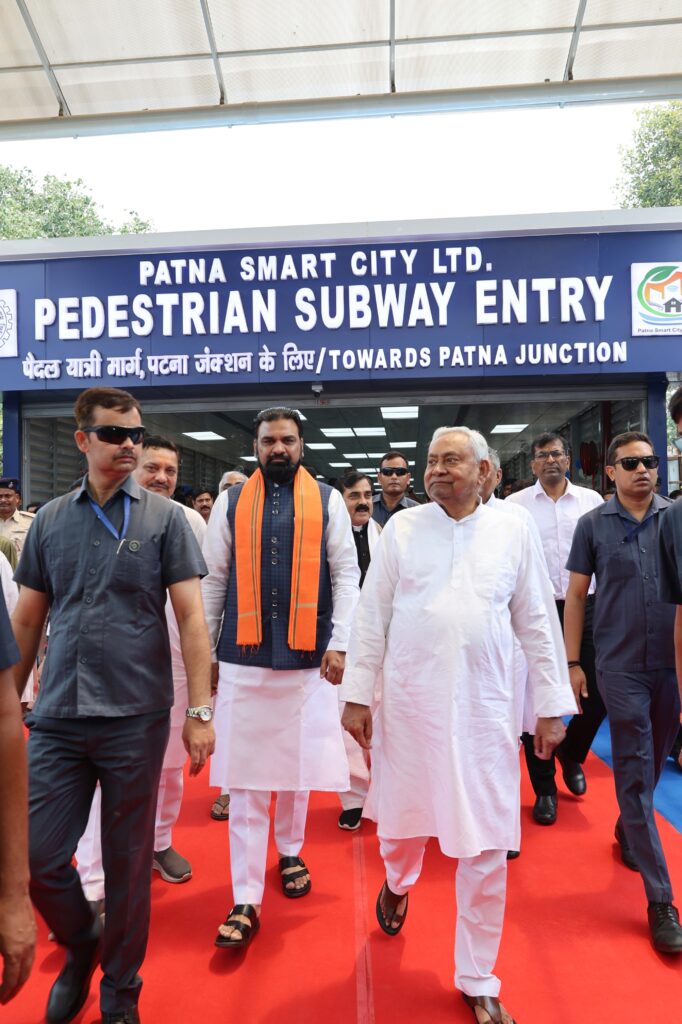 पटना,17 मई 2025: मुख्यमंत्री नीतीश कुमार ने आज जी.पी.ओ.पटना के पास नवनिर्मित बहुमंजिला पार्किंग भवन (मल्टी मॉडल हब) तथा पटना जंक्शन तक भूमिगत पथ (सब-वे) का शिलापट्ट अनावरण कर एवं फीता काटकर लोकार्पण किया। रिमोट के माध्यम से नवनिर्मित बहुमंजिला पार्किंग भवन (मल्टी मॉडल हब) से बसों एवं यात्री वाहन के परिचालन का मुख्यमंत्री ने शुभारंभ किया। लोकार्पण के पश्चात् नवनिर्मित भूमिगत पैदल यात्री मार्ग (सब-वे) का मुख्यमंत्री ने निरीक्षण किया।